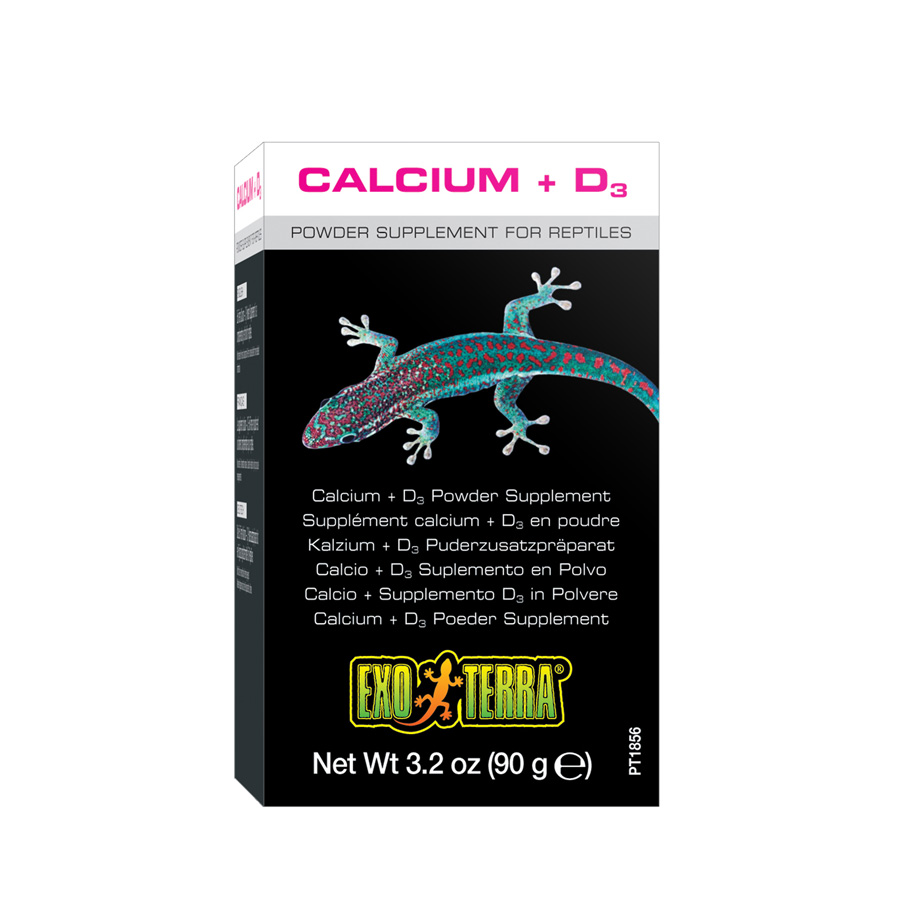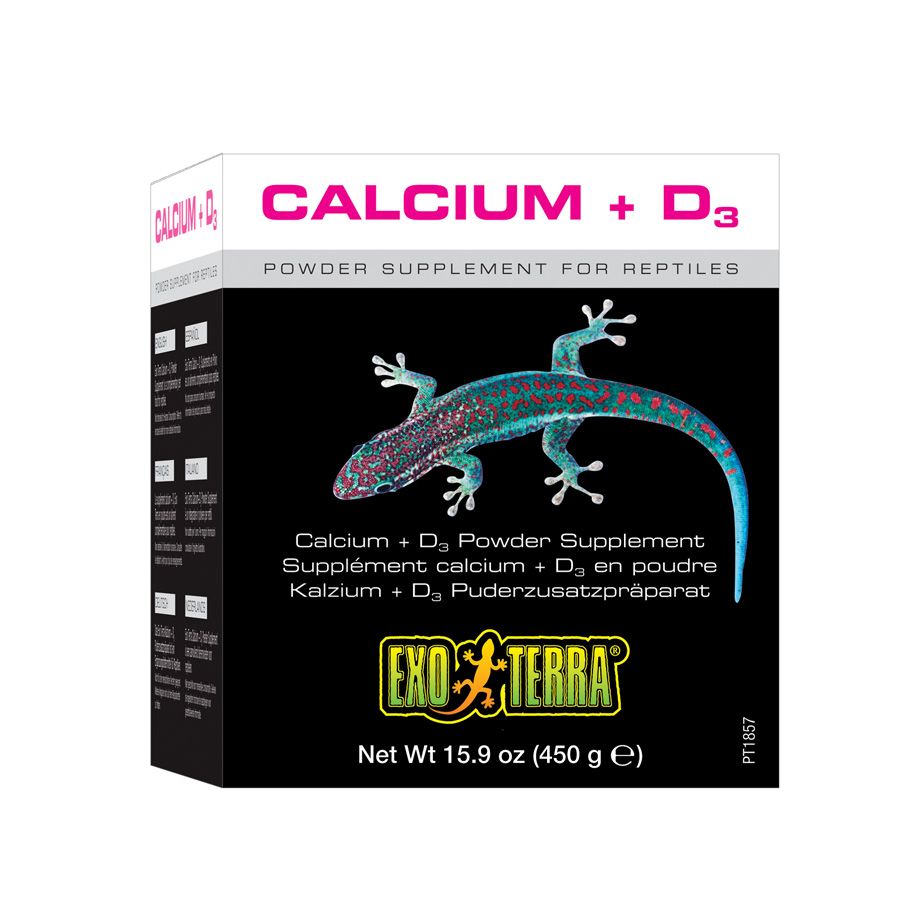 Exo Terra Calcium + D3 ist ein Kalziumpräparat, das speziell für Reptilien im Terrarium entwickelt wurde. Dank des Zusatzes an Vitamin D3 wird Exo Terra Calcium schnell vom Körper aufgenommen und kann dort die für Reptilien so wichtigen Funktionen erfüllen. Die schnelle Aufnahme in den Reptilienkörper ist auch der Grund, warum Exo Terra Calcium + D3 kein Phosphor enthält, welches die Terrarienbewohner in der Regel mehr als ausreichend über die Nahrung aufnehmen. Warum sollte man eigentlich Exo Terra Calcium + D3 zufüttern? Reptilien, die von Menschen gehalten werden, leiden fast immer unter einem Problem: Kalziummangel. Dies liegt einfach daran, dass man trotz ausgefeilter Terrarientechnik und bester Ernährung seiner Reptilien nicht exakt die gleichen Nahrungsbedingungen schaffen kann, die die Tiere in freier Natur vorfinden. Es ist also lebenswichtig für die Terrarienbewohner, dass diese zusätzlich mit Kalzium versorgt werden. Exo Terra Calcium + D3 wurde genau dafür entwickelt und verhindert die gefürchteten Krankheiten wie Rachitis oder Panzerdeformation, die bei Kalziummangel schnell auftreten können.